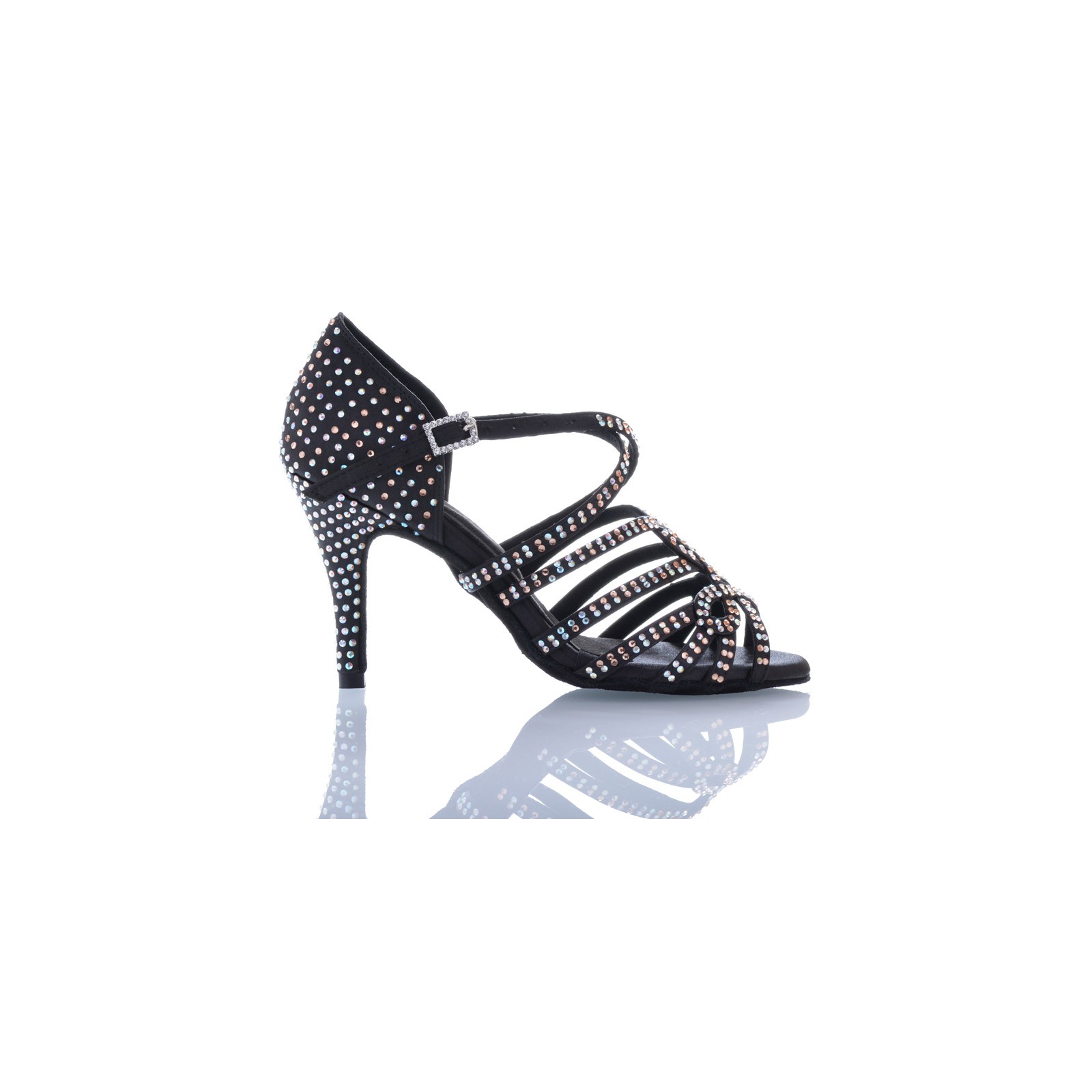 Chassure de danse en satin noir constellée de strass pour la salsa ou la bachata